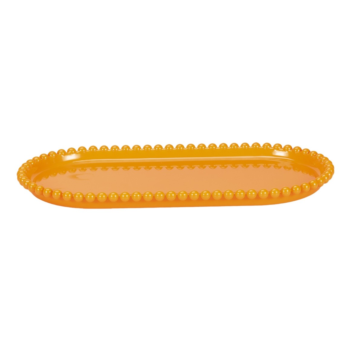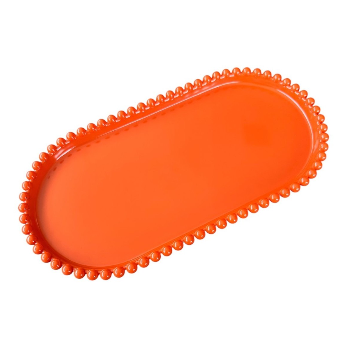 Bandeja oval charmosa e resistente, com detalhe nas bordas.