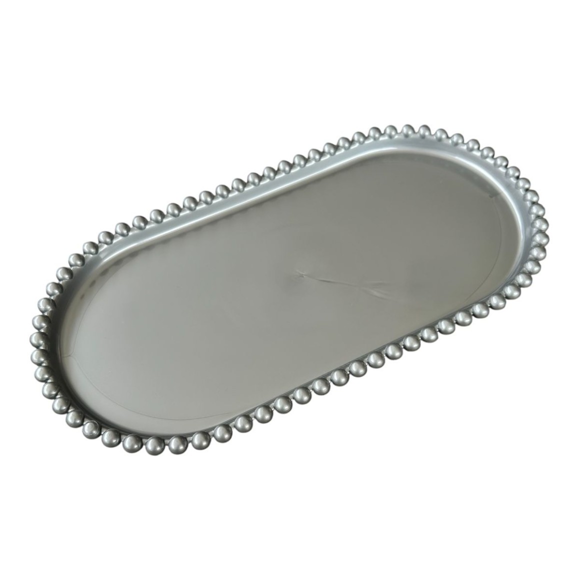 Bandeja oval charmosa e resistente, com detalhe nas bordas.