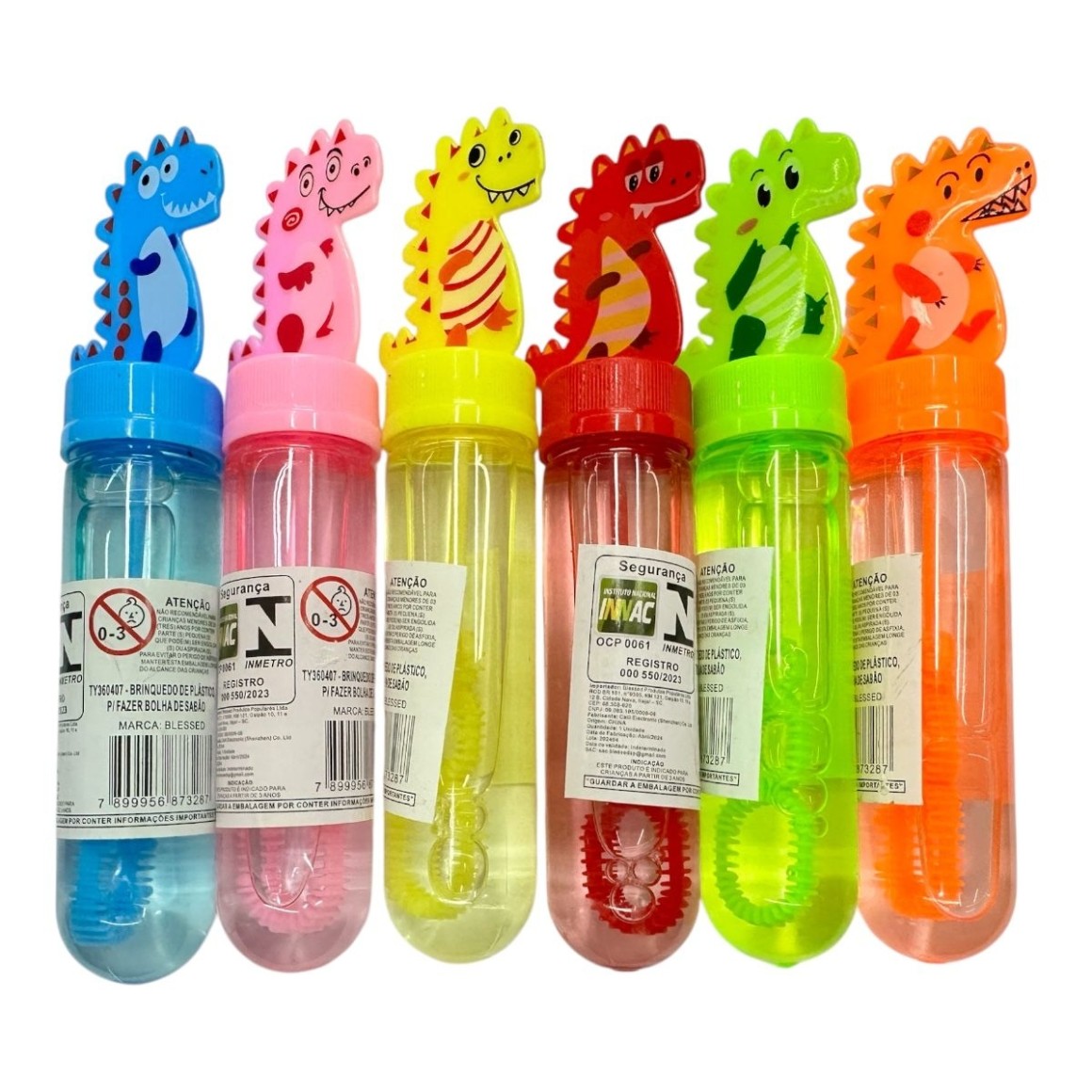 Lança Bolhas com tampa em formato de dinossauro, perfeito para dar como lembrancinha.
