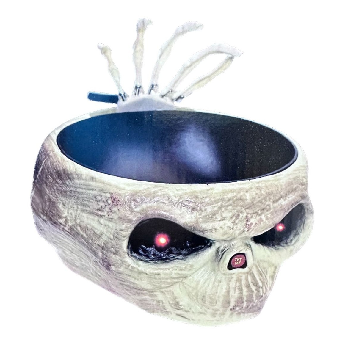 Caveira para colocar doces, quando pegar o doce a mão do esqueleto vai te assustar.