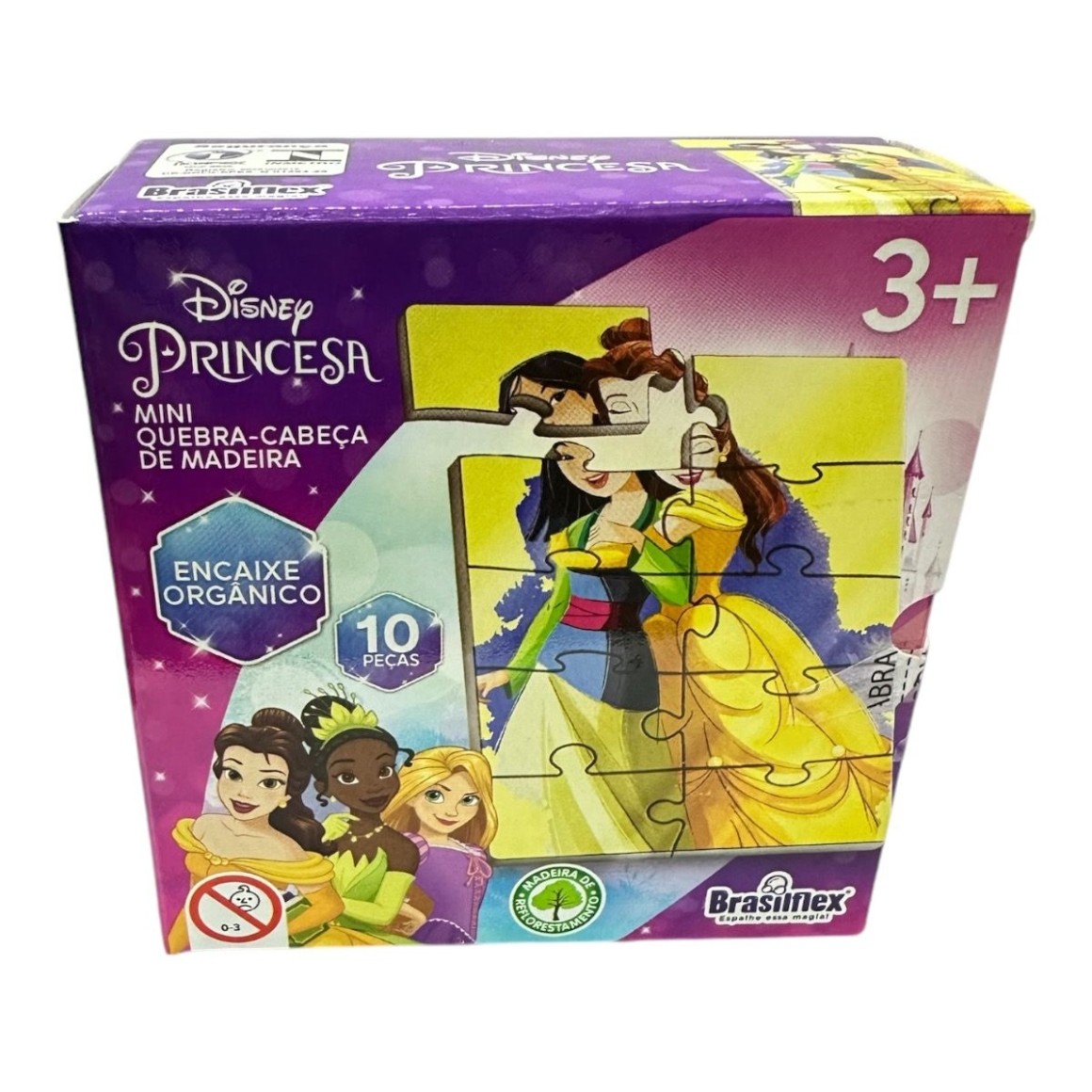 Mini quebra-cabeça de madeira (MDF), contém 10 peças com encaixe orgânico.