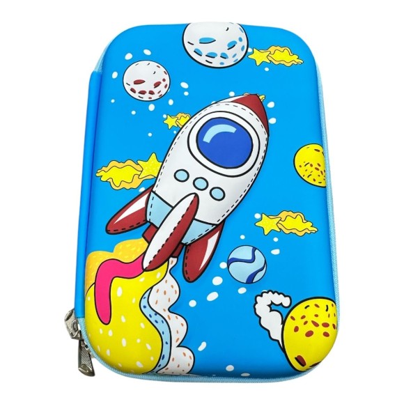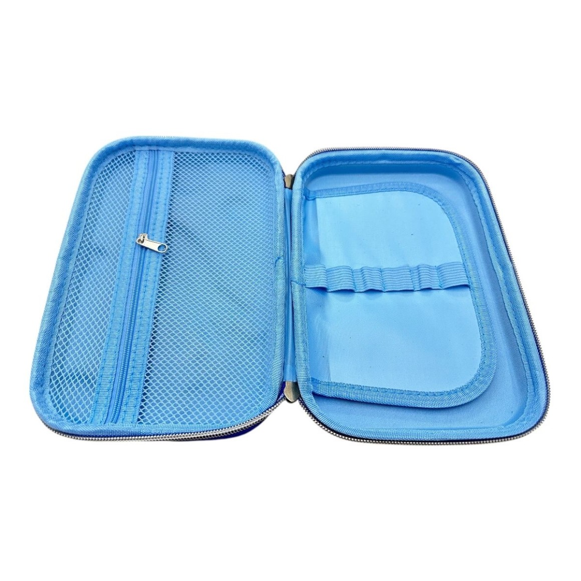 Estojo escolar com zíper, acabamento externo emborrachado, acabamento interno em poliester.