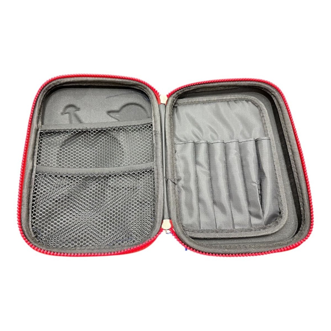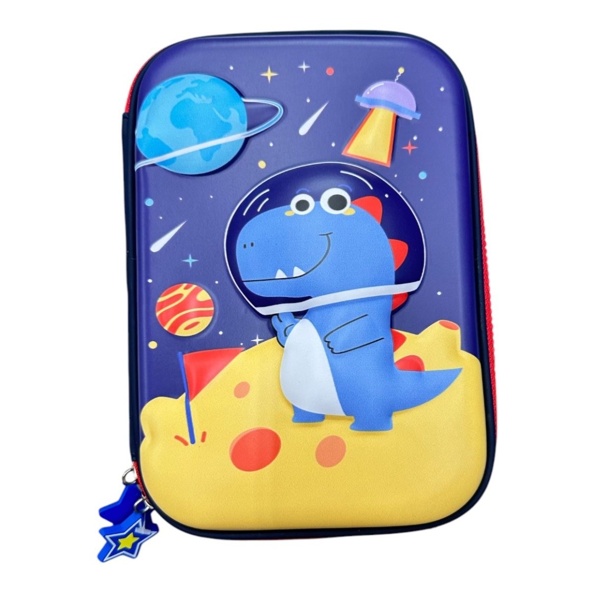 Estojo escolar com zíper, acabamento externo emborrachado, acabamento interno em poliester.
