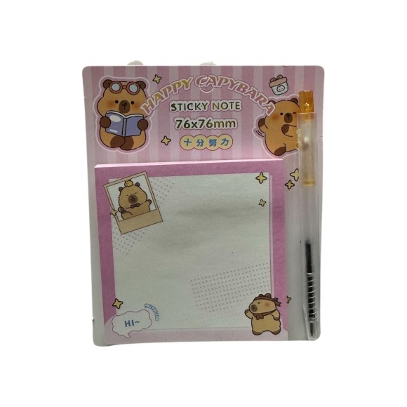 O bloquinho é composto por 70 folhas tipo post it tamanho 7,6 x 7,6cm , todas estampadas com tema capivara.