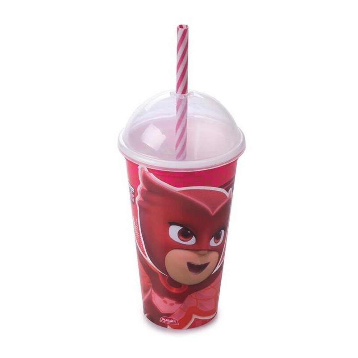 COPO SHAKE PJ MASKS CORUJITA COM TAMPA E CANUDO