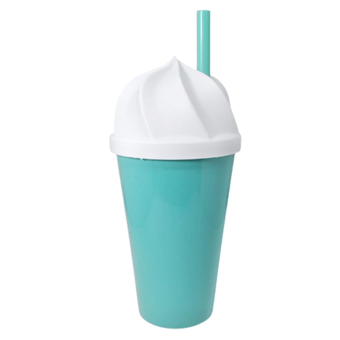 COPO EM FORMATO DE SORVETE COM TAMPA E CANUDO